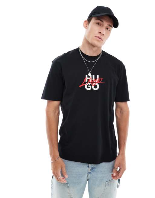 HUGO RED - Diogny - Sort t-shirt med centralt logoprint