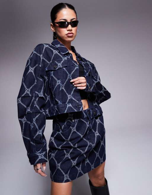 HUGO Red - Gisolia - Mørkeblå denimjakke med print - Del af sæt