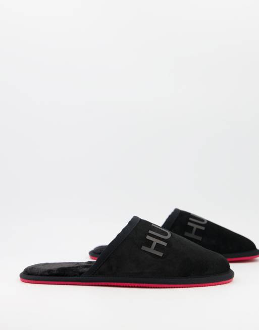 HUGO - Sorte mule-hjemmesko i ruskind med stort logo