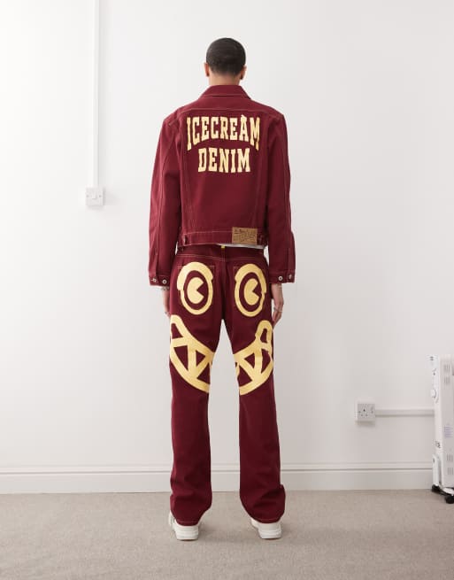 ICECREAM - Bordeaux trucker-jakke med print på ryggen i denim - Del af sæt