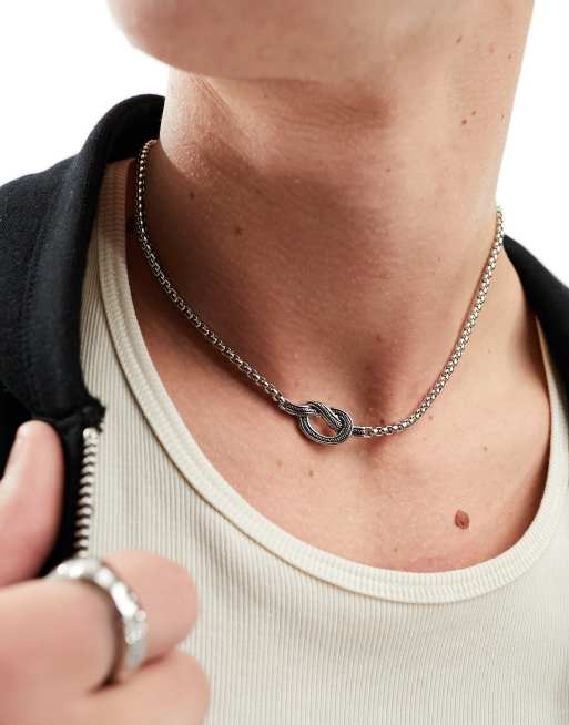 Icon Brand - Sølvfarvet halskæde i omstøbt rustfrit stål med kæde og knudedesign