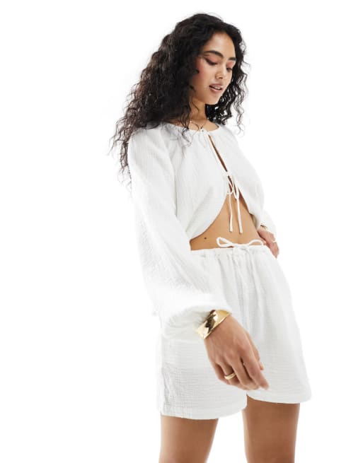 Iisla & Bird - Sæt med strandtop og shorts i hvid