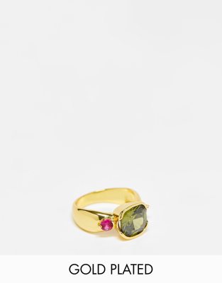 Image Gang - Olive - Ring i 18k guldbelægning med turmalin- og rubinfarvede sten