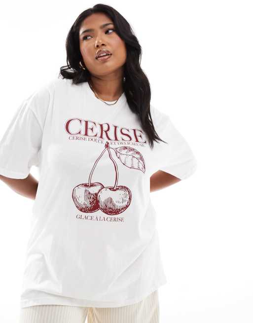 In The Style Plus - Oversized og hvid T-shirt med kirsebærprint