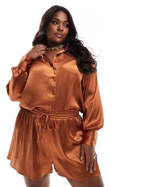 In The Style Plus - Rustfarvet og langærmet satinskjorte - Del af sæt