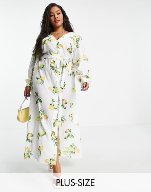 In The Style Plus x Stacey Solomon - Midikjole i summer citron-print med bindedetalje