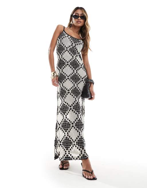 In The Style - Hæklet cami-maxikjole med sort/hvidt patchwork-design