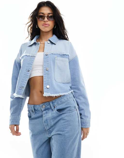 In The Style - Lyseblå denimjakke med frynsekant og lommedetalje