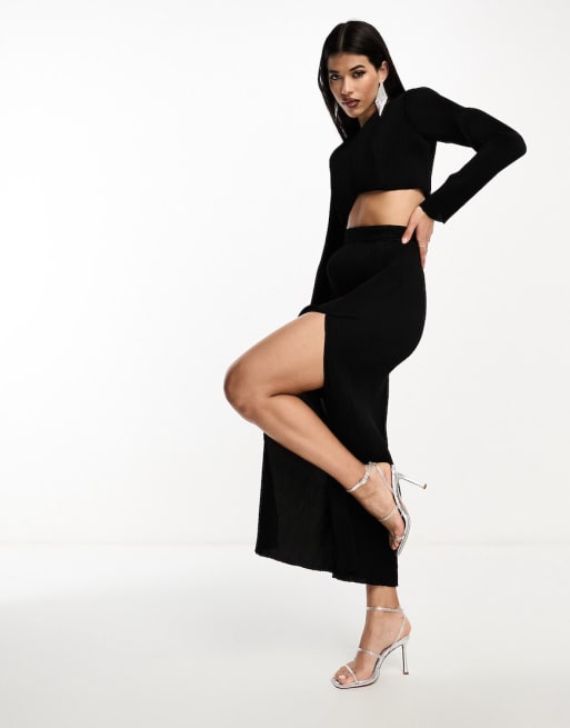 In The Style - Sort sæt med croptop og plisseret maxinederdel