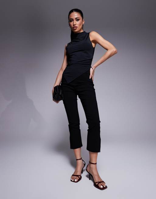 In The Style x Natalya Wright - Sorte capri-bukser med sideslidser i bengalin - Kun hos ASOS