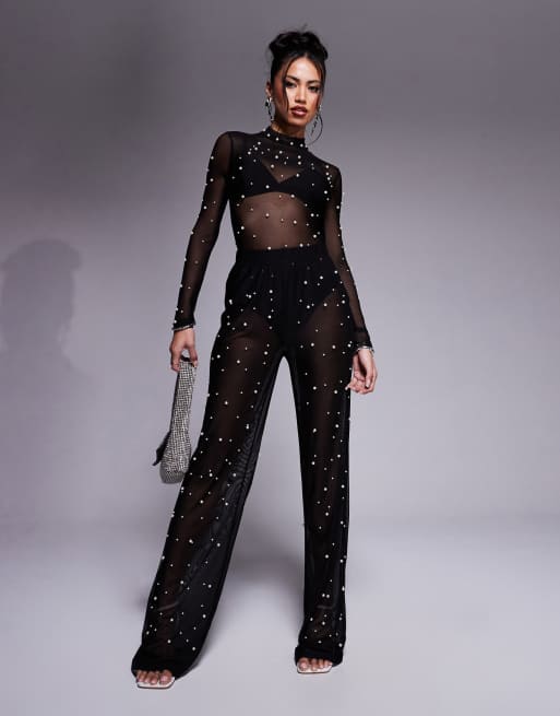 In The Style x Perrie Sian - Sorte bukser med perleudsmykning i mesh - Del af sæt - Kun hos ASOS