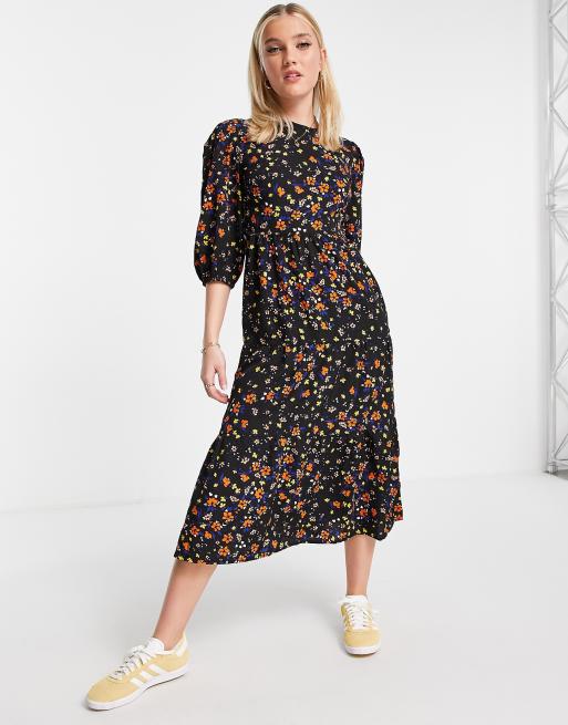 Influence - Lagdelt midikjole med blomstermønster