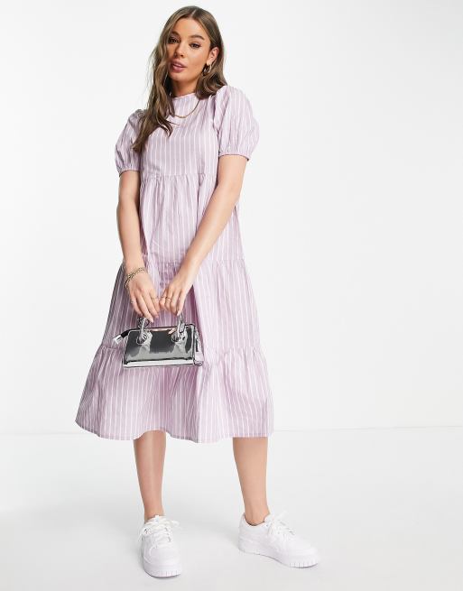 Influence - Lagdelt smock-midikjole i lilla med striber