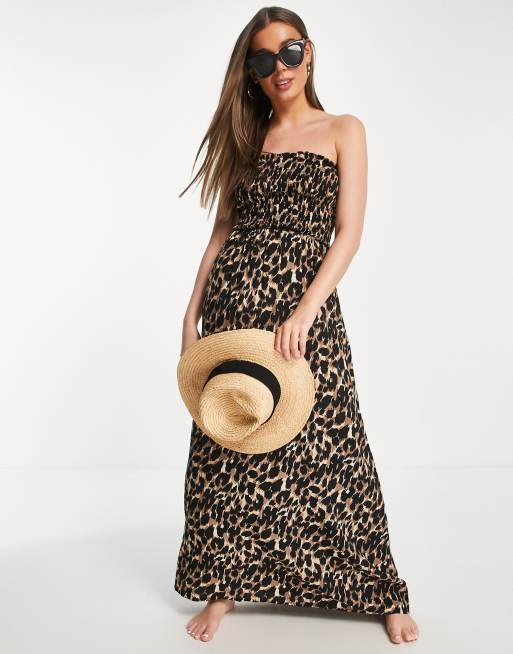 Influence - Maxi-strandkjole i bandeau-snit med leopardprint