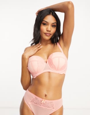Ivory Rose Fuller Bust - Koralrødt lingerisæt i mesh med geometrisk print