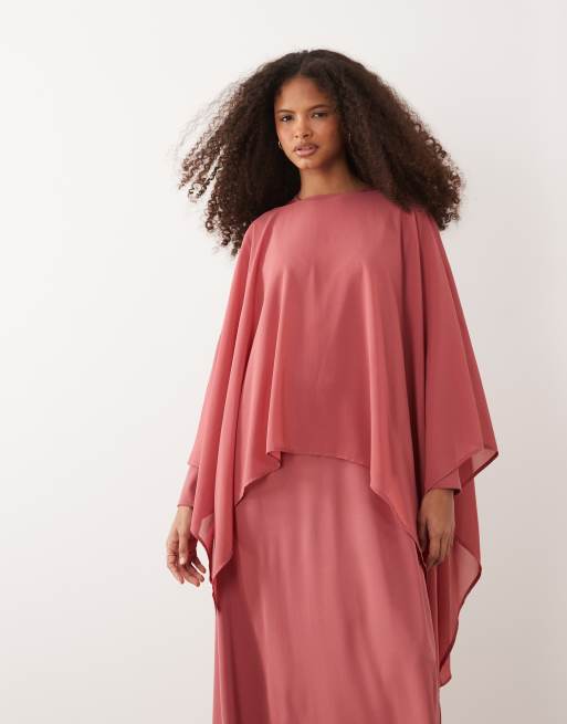 IYAL - Koral-lyserød maxikjole i satin og chiffon med draperet kappeoverlag