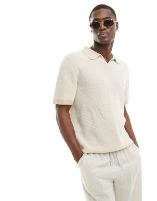 Jack & Jones - Beige og strikket polotrøje med slids i halsen