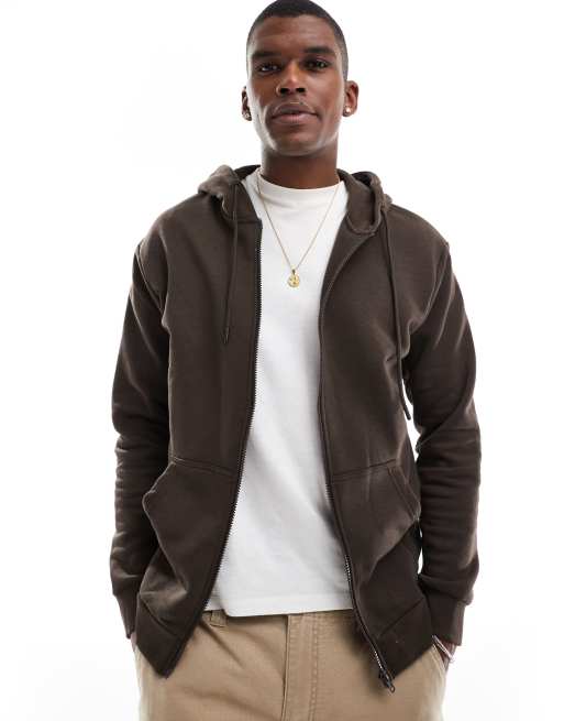 Jack & Jones - Chokoladebrun oversized hættetrøje med lynlås