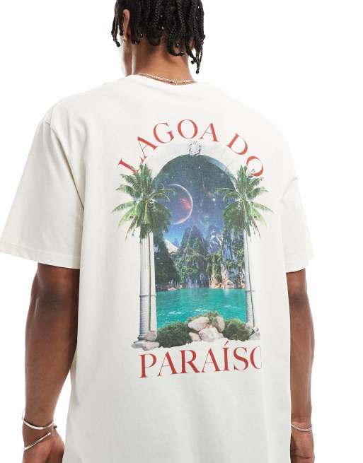 Jack & Jones - Cremehvid oversized T-shirt med søprint på ryggen
