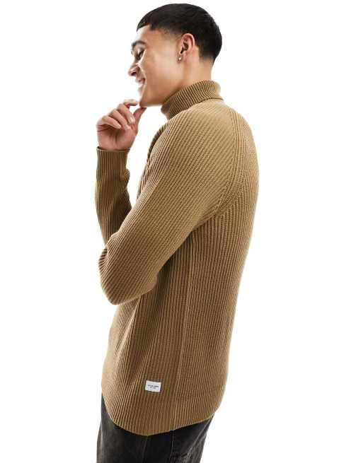 Jack & Jones - Gyldenbrun og ribstrikket rullekravebluse