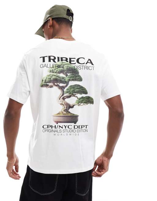 Jack & Jones - Hvid og oversized T-shirt med Tribeca-rygprint