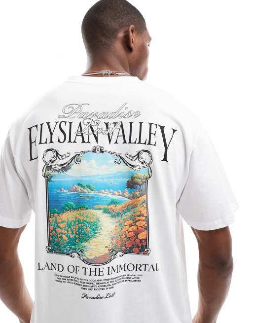 Jack & Jones - Hvid oversized T-shirt med landskabsprint på ryggen