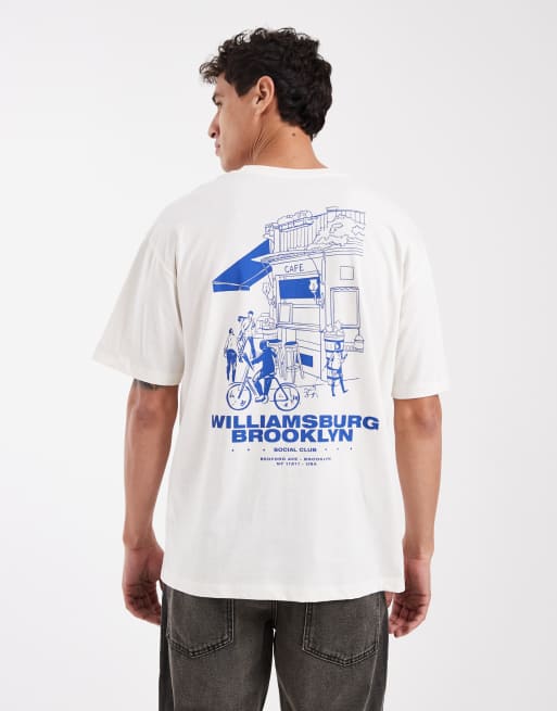 Jack & Jones - Hvid T-shirt med "Williamsburg Café"-print på ryggen