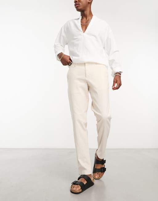 Jack & Jones Intelligence - Cremefarvede bukser i gulerodsform i hør
