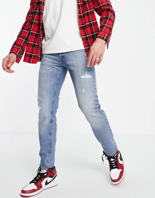 Jack & Jones Intelligence - Mike - Blå jeans med lige pasform og flænger