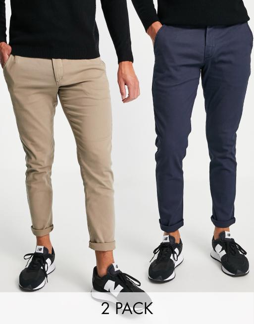 Jack & Jones Intelligence - Pakke med 2 par chinos i beige og marineblå