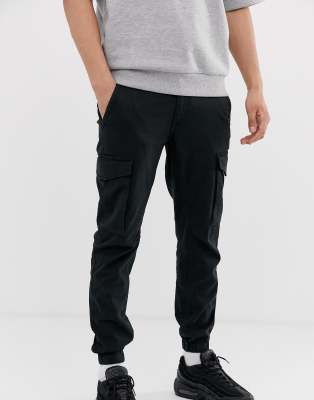 Jack & Jones Intelligence — Sorte cargobukser med manchetter