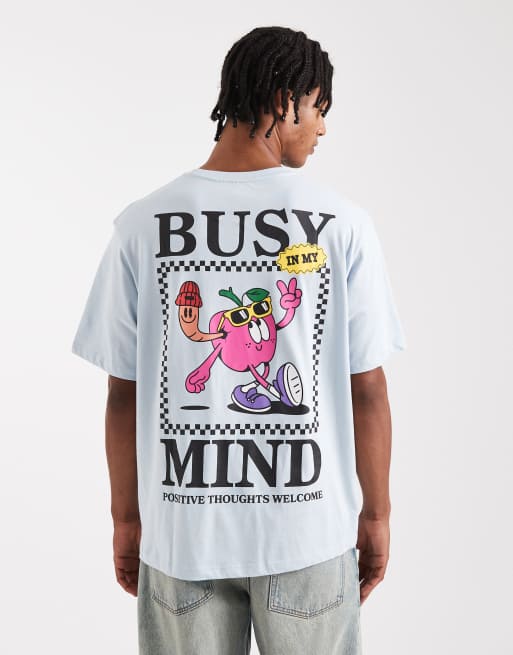 Jack & Jones - Lyseblå oversized T-shirt med 'Busy Mind'-print