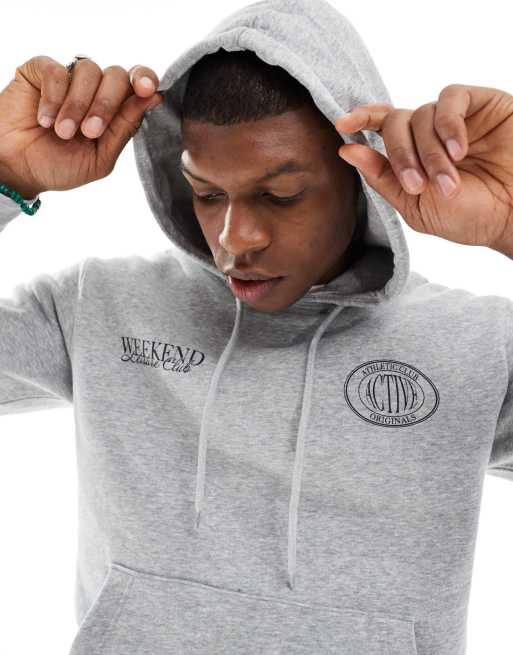 Jack & Jones - Oversized hættetrøje med 'Weekend'-print i gråmeleret
