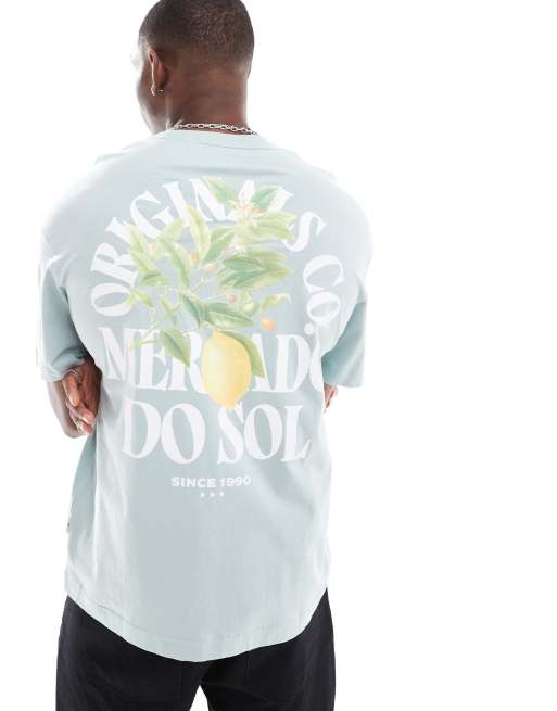 Jack & Jones - Oversized T-shirt i mintgrøn med citronprint bagpå