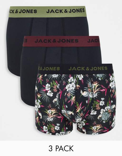 Jack & Jones - Pakke med 3 par boksershorts med blomstermønster i sort mikrofiber