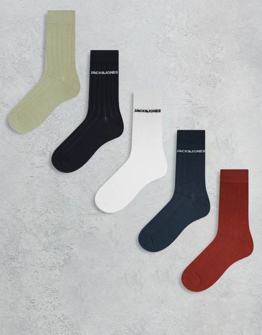 Jack & Jones - Pakke med 5 par ribstrikkede sokker i grå/orange/hvid