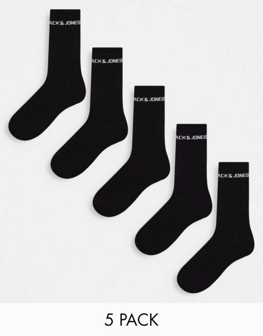 Jack & Jones - Pakke med 5 par sorte sportssokker med logo