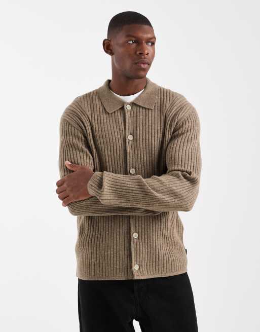 Jack & Jones - Premium - Beige cardigan med ribber og krave