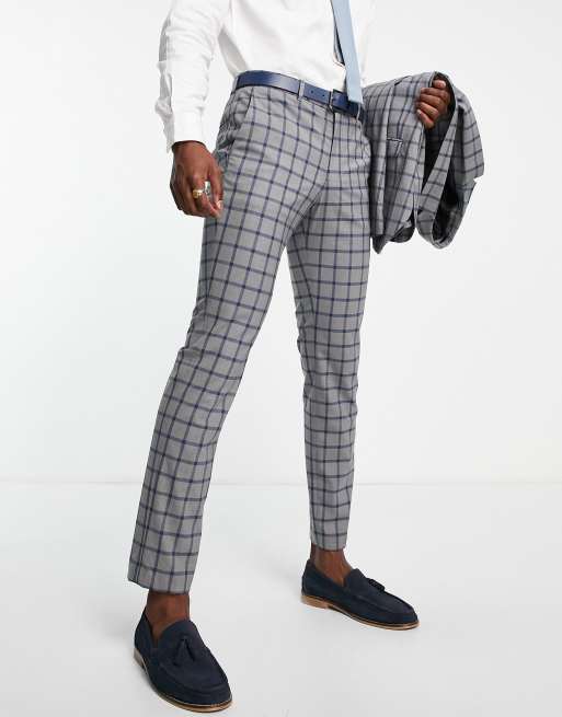 Jack & Jones - Premium grå habitbukser i smal pasform med tern