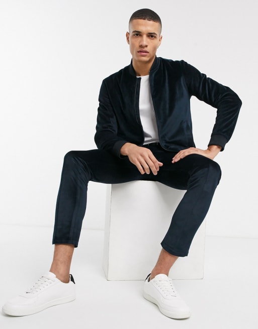Jack & Jones Premium - Navy bomber-suit i velour