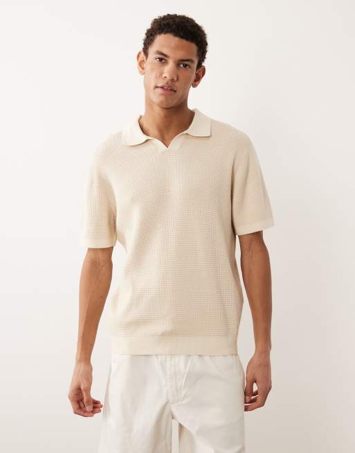 Jack & Jones - Premium - Råhvid strikket poloskjorte med halshak