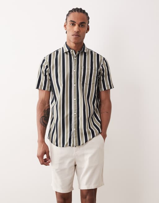 Jack & Jones - Smal skjorte med korte ærmer og kakigrønne og sorte striber