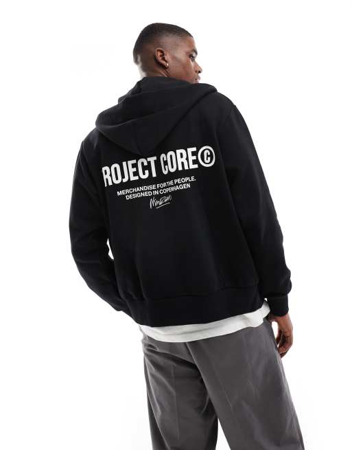 Jack & Jones - Sort oversized hættetrøje med print på ryggen og dobbelt lynlås