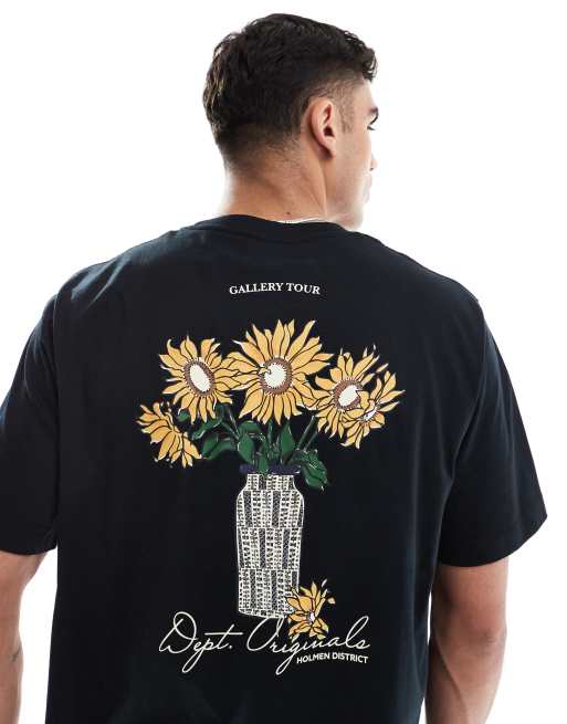 Jack & Jones - Sort oversized T-shirt med blomsterprint på ryggen