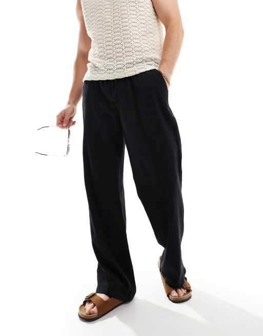 Jack & Jones - Sorte bukser i krølstof med brede ben
