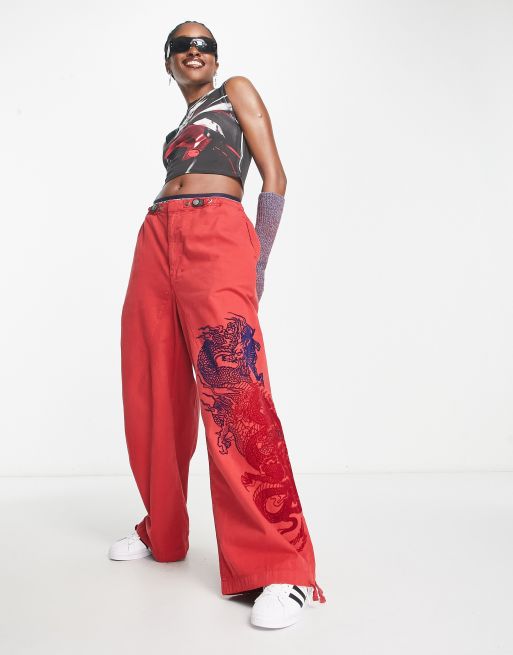 Jaded London - Lavtaljede faldskærmsbukser med rødt mønster