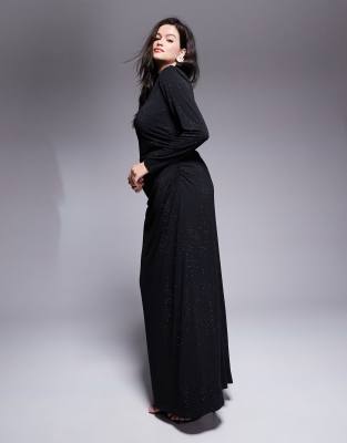 Jaded Rose Plus - Langærmet sort maxikjole med hotfix-udsmykninger