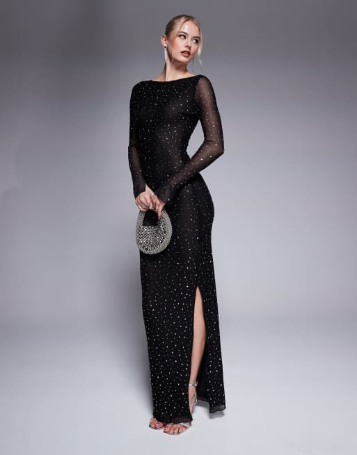 Jaded Rose Tall - Sort maxikjole med hotfix-udsmykninger