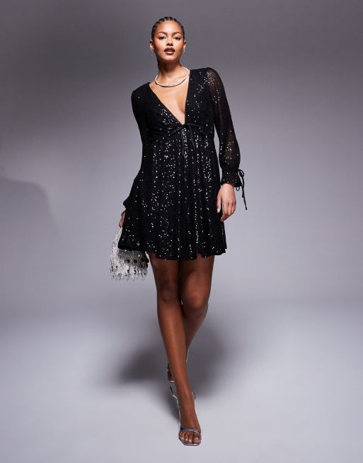 Jaded Rose Tall - Sort minikjole med pailletter