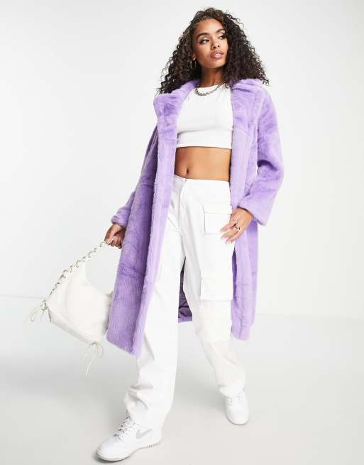 Jayley - Lang frakke i lyslilla, imiteret pels